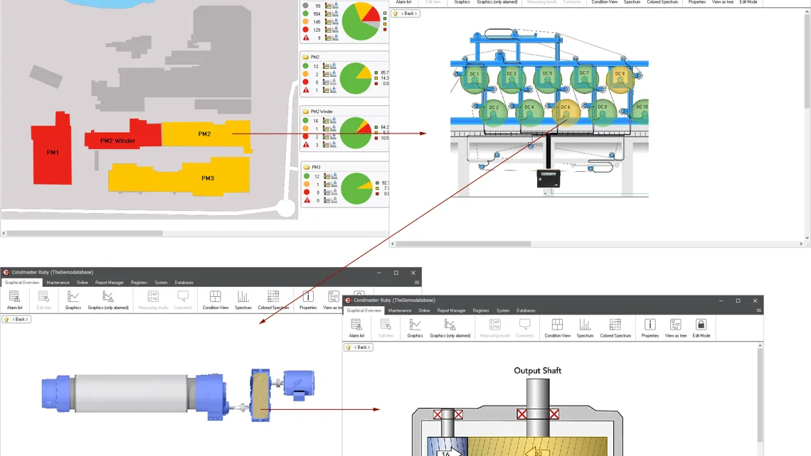 With a modern interface and powerful graphical tools, Condmaster® makes it simple to navigate from a plant-wide overview down to individual measuring points.