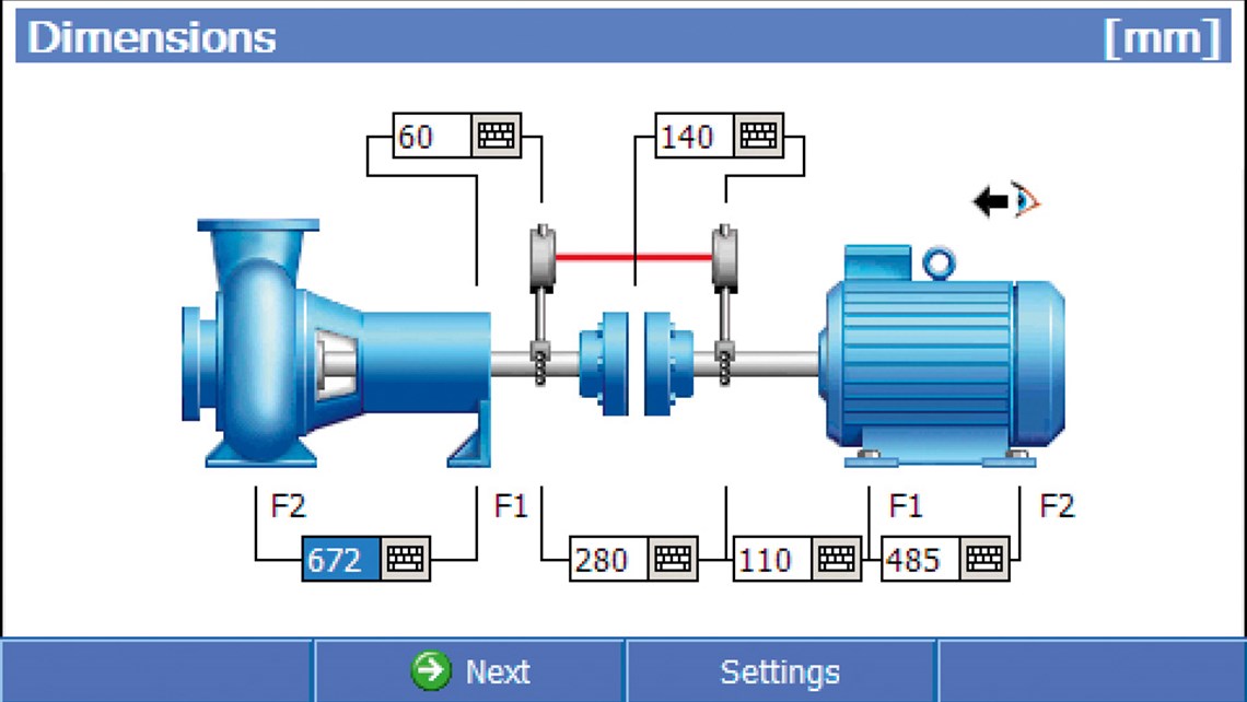 For laser alignment of horizontal and vertical machines, the optional LineLazer Alignment Kit connects wirelessly to Leonova Diamond, and the user is guided through the alignment procedure to a perfect result.