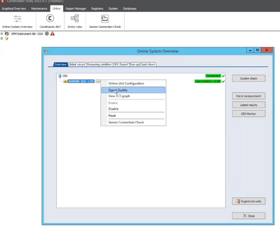 I click on the online system overview. I activated the signal quality assessment some time ago, so I already have a lot of data. I click on “signal quality” to view it.