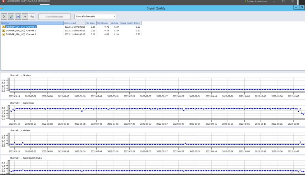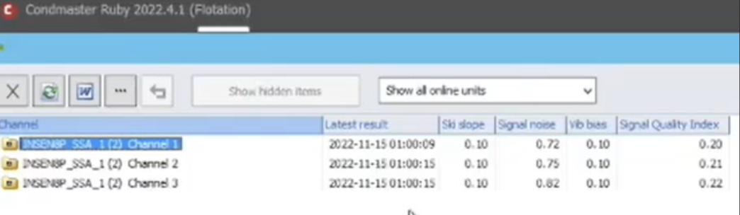 Let’s look at line readings in the Condmaster Ruby. I have logged into the software through a remote desktop connection, and the first part I want to show you is the signal quality evaluation for a flotation application.