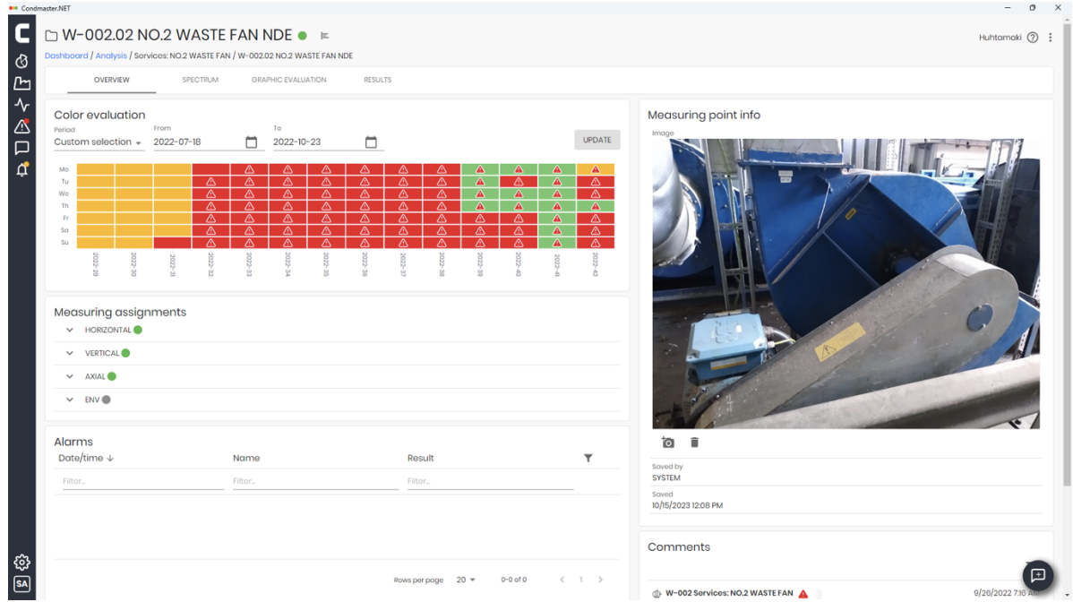 The effectiveness of the condition-based maintenance program is tracked by the maintenance management team using Plant Performer with relevant KPIs and logging corrective maintenance actions to demonstrate the cost savings made through timely intervention and scheduling of planned remedial maintenance. Condmaster Ruby provides an automatic diagnosis of machine fault symptoms when an alarm is generated. The system detected an imbalance defect which was subsequently corrected by carrying out balancing operations on the fan as described on pages 10 and 11.