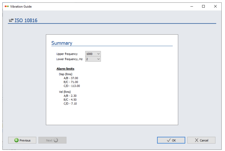 Alarm limits were established using a combination of ISO 10816 guidelines for vibration velocity – part 3, group 1, flexible support, rotational speed > 600 RPM.