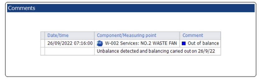 Image 13 Corrective maintenance comment in Condmaster Ruby