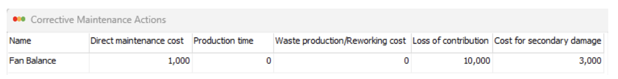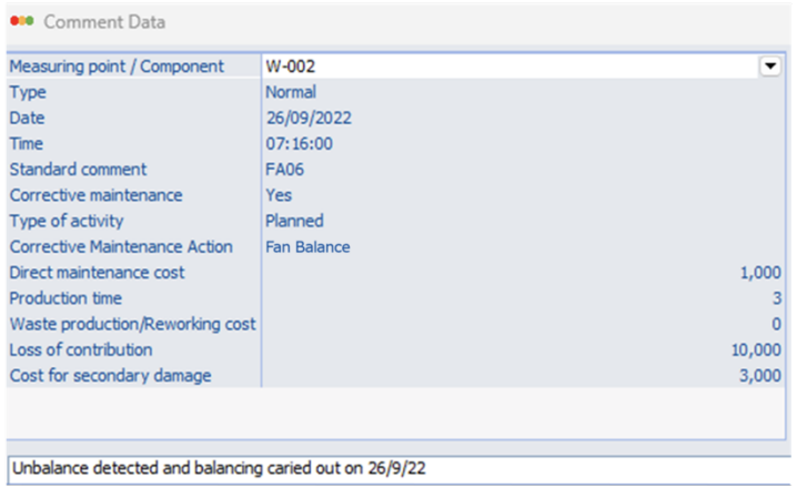 Image 16 When selecting fan balancing as a corrective maintenance action on the W-02 measuring point, the costs associated with fan balancing (see Image 15) are automatically retrieved.