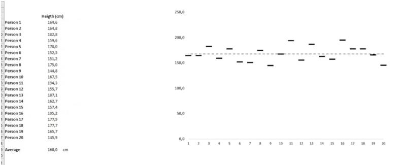 Figure 1: Group of 20 people with an average height of 172.4 cm.