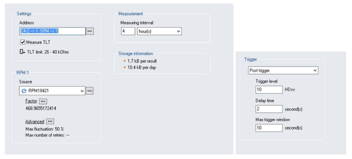 The Max trigger window is set to 10 seconds, which is enough time for this application to meet the requirements set by the measuring assignment. We have been trying out a number of settings for the post trigger over a good year and it has been decided that these settings are best suited to this particular application.