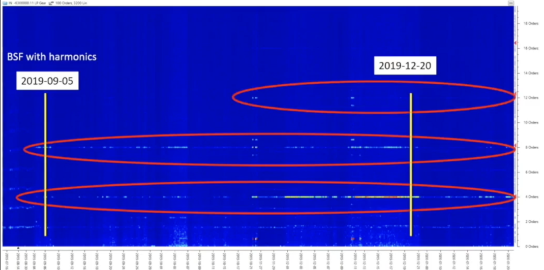Figure 12: Color spectrum overview showing BPFO with harmonics