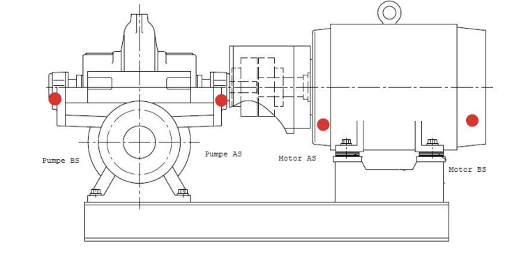 Figure 2 Measuring point locations on the motor and pump A and B sides.