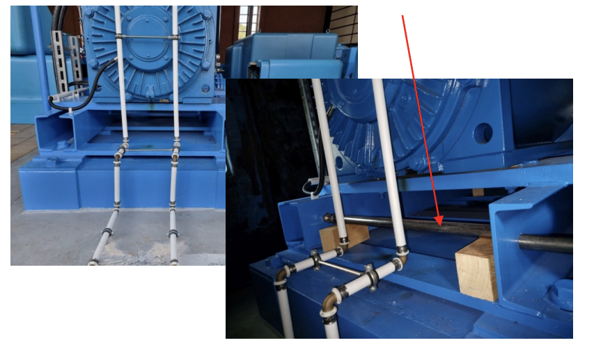 After installing online monitoring on all drinking water feed pumps in the Mülheim Styrum-East waterworks, abnormalities were found in the VEL vibration values on the Oberhausen 3 feed pump relating to the electric motor’s A and B sides. After spectrum analysis and follow-up measurements with portable instrumentation on the foundation confirmed high amplitude vibration at the resonance frequency, it was concluded that the motor frame was too weak. To resolve the issue, the frame was stiffened by fitting cross braces.