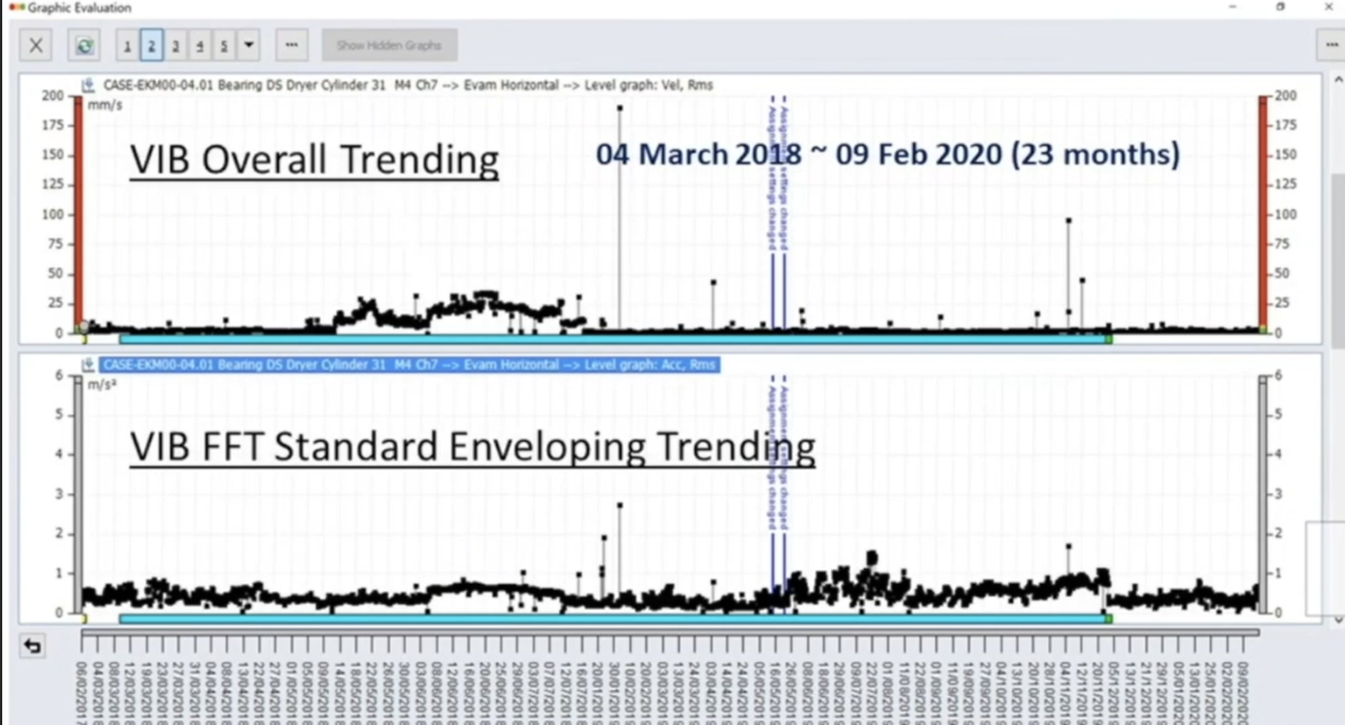 Figure 4 shows the vibration overall trending and FFT standard enveloping trending.