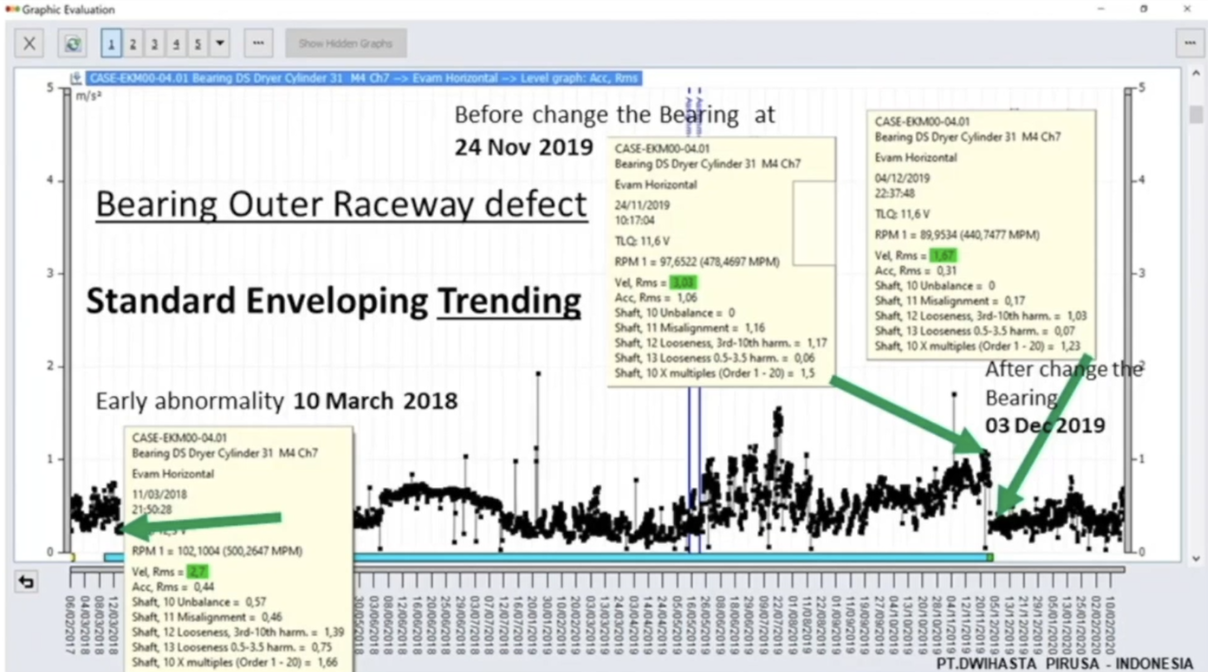 On March 10, 2018, we detected an early anomaly on a bearing in Dryer 31. This was a 23036 bearing in a variable-speed machine, ranging from approximately 65 to 110 RPM.