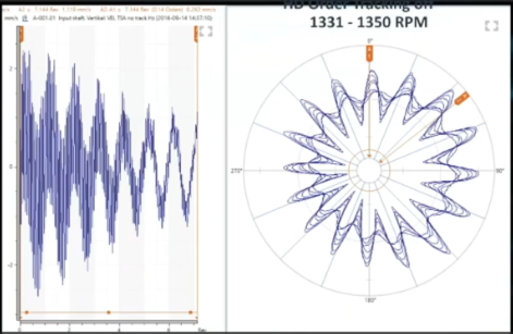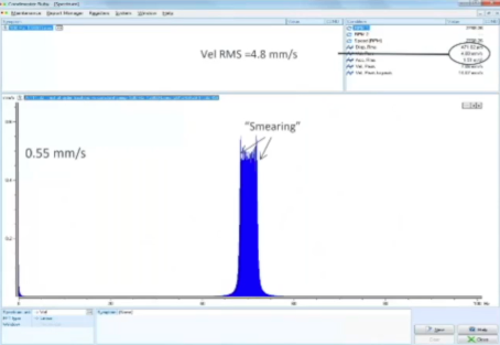 To understand smearing, see the example in Figure 4 from a test rig with unbalance. The speed was deliberately changed during the sampling pe iod, creating the smearing effect.