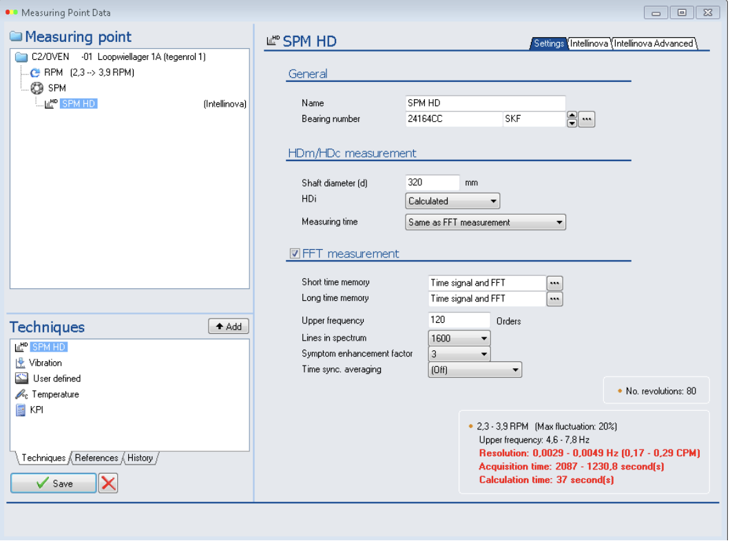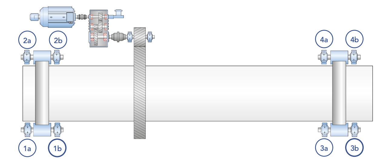 With the initial setup of the system, SPM HD was used for the low-RPM part, i.e. the support wheel bearings, support bearing of the pinion wheel driving the calciner drum, and the gearbox output shaft bearings. For normal speed motor/gearbox bearings, traditional vibration and enveloping was used.