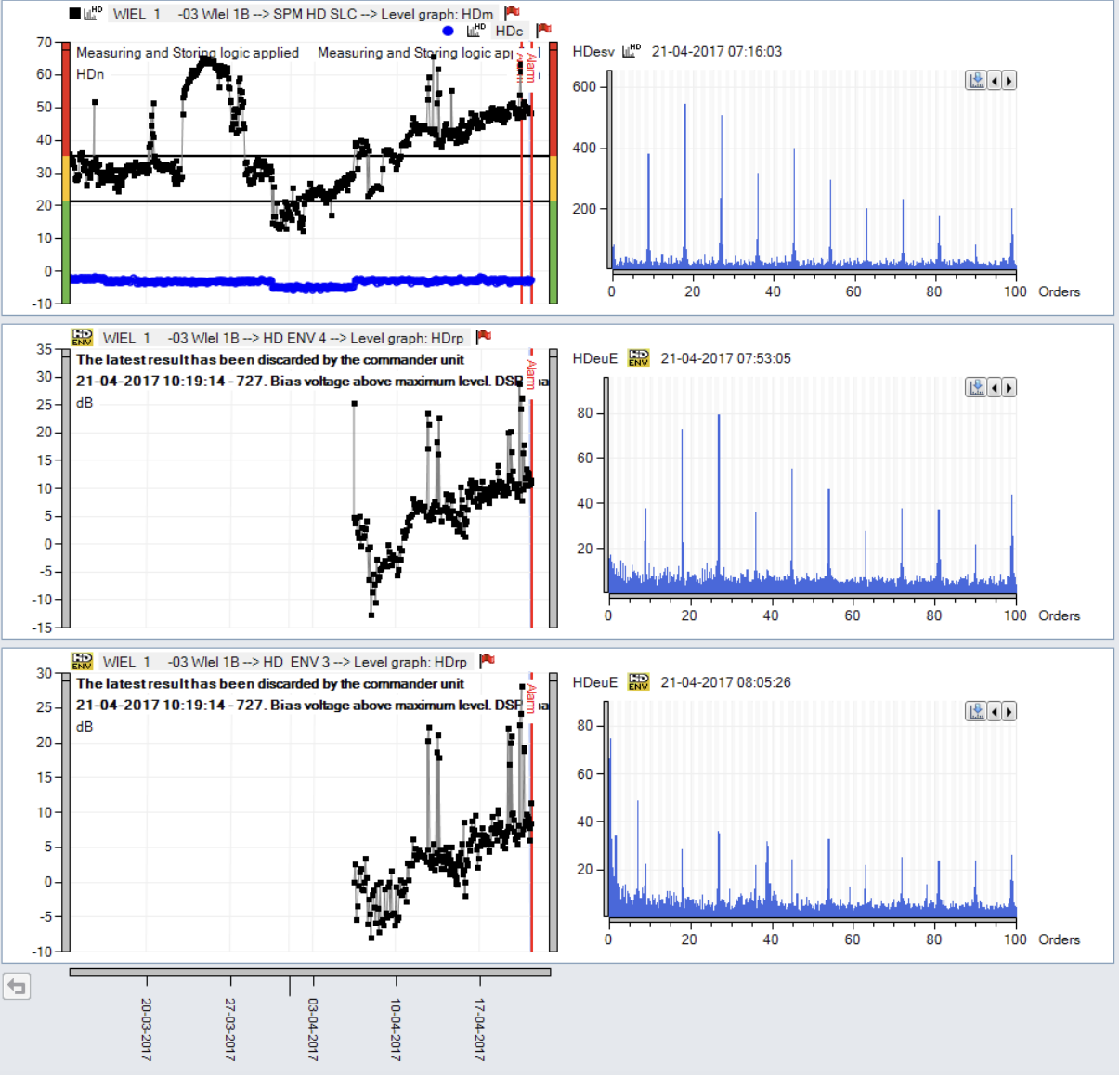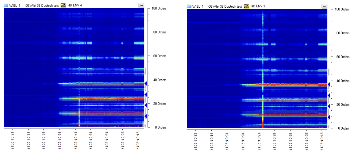 Fig 8. Around April 5, 2017, HD ENV measurements were added, showing clear signs of outer race bearing wear