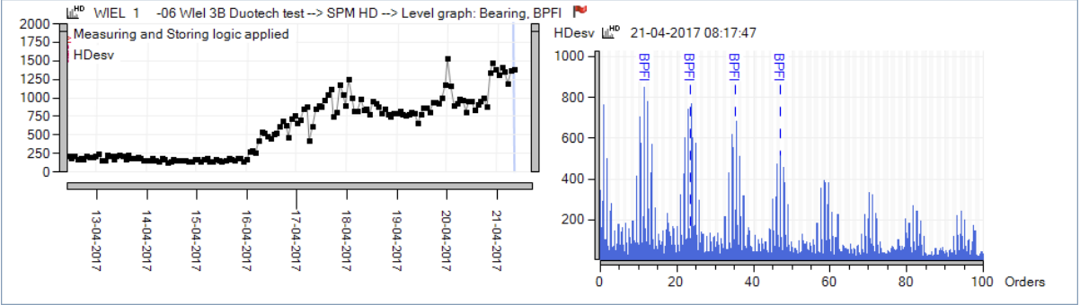 In this case study, a number of cases are described. Cases no. 2 and 3 are examples of bearing damages using HD technology and DuoTech accelerometers.